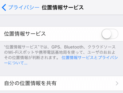 位置情報の共有も同じく、節約のために不要な場合はオフにしておきましょう。 ・設定アプリを起動 ・プライバシー ・位置情報サービス ・自分の位置情報を共有 ・位置情報を共有をオフに
