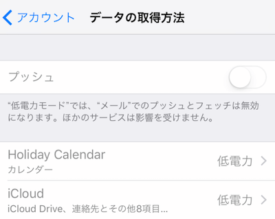 メールの受信形態にはプッシュとフェッチがあり、フェッチの方が設定しだいでは節約になります。「フェッチ」に設定をし、「手動」にすることで節約になります。 ・設定アプリを起動 ・メール ・アカウント ・データの取得方法