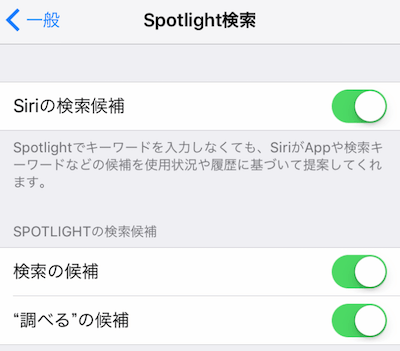 Spotlightは素早く検索するためのサポートをしてくれますが、その分常に動いており、電池を消費し続けています。オフにすることで節約になります。 ・設定アプリを起動 ・一般 ・Spotlight検索 ・Siriの検索候補、検索の候補、"調べる"の候補をオフに