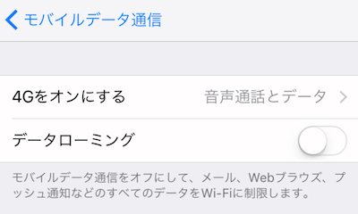 大概の人はオフになっていると思いますが、海外でiPhone利用をする際にデータローミングをオンにしますが、不要であればオフにしておきましょう。 ・設定アプリを起動 ・モバイルデータ通信 ・通信のオプション ・データローミングをオフに