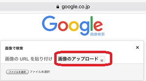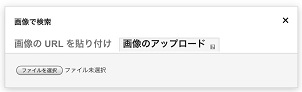 「画像のURLを貼り付け」か「画像のアップロード」が選べますので、ここでは「画像のアップロード」で検索してみます。