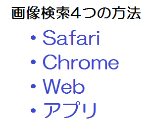 ここではiPhoneで画像検索する方法を ・Safari(サファリ)で画像検索 ・GoogleChrome(グーグルクローム)で画像検索 ・ウェブの画像から画像検索 ・アプリで画像検索 の4つの方法で紹介していきます。