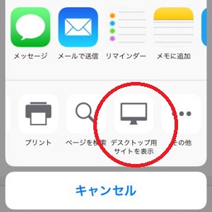 右にスクロールして 「デスクトップ用サイトを表示」をタップします。