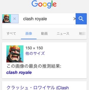 画像での検索結果が表示されました。 この画像は「clash royale(クラッシュ・ロワイヤル)」というゲームの画像だということが分かりますね。 「クラロワ」についてはApricoで詳しく紹介しているので是非参考になさってください。