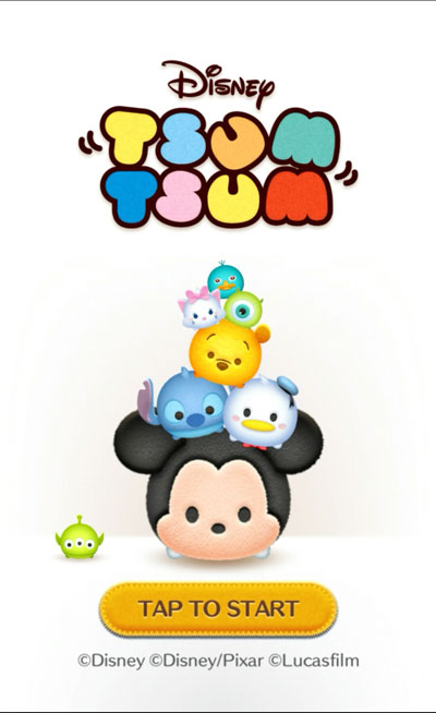 「LINE:ディズニー ツムツム」アプリを開き、「TAP START」のボタンをタップすると、このような画面が表示されます。 この画面からゲームをプレイすることができます。さっそく「スタート」ボタンをタップして、ゲームをはじめてみましょう!