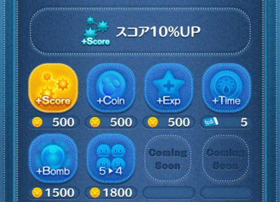 500コインを使って、1プレイのスコアを10%UPすることができるアイテムです。