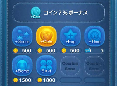 500コインを使って、1プレイのコイン獲得数を増やすアイテムです。増やせるコインの%数はランダムです。