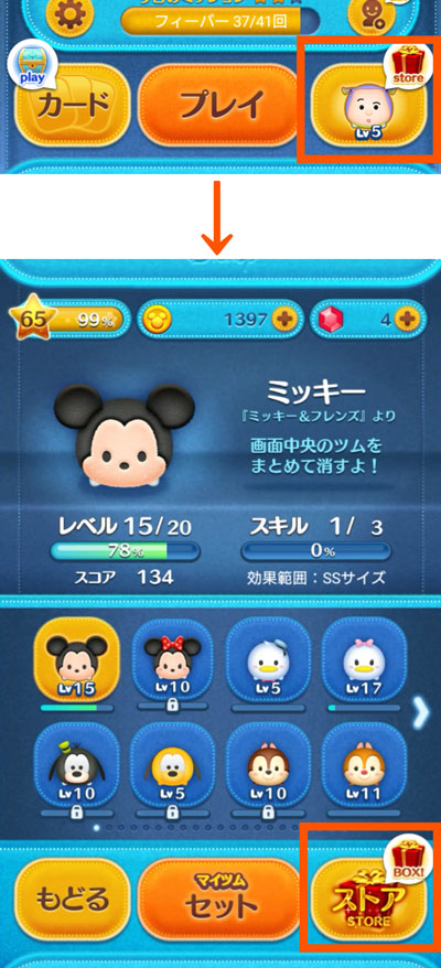 コインを集めると、新しいマイツムを入手できる「BOX」を購入できます。 「BOX」の購入方法は、ランキング画面の右下にあるツムがあるアイコンをタップ→右下にある「ストア」ボタンをタップします。