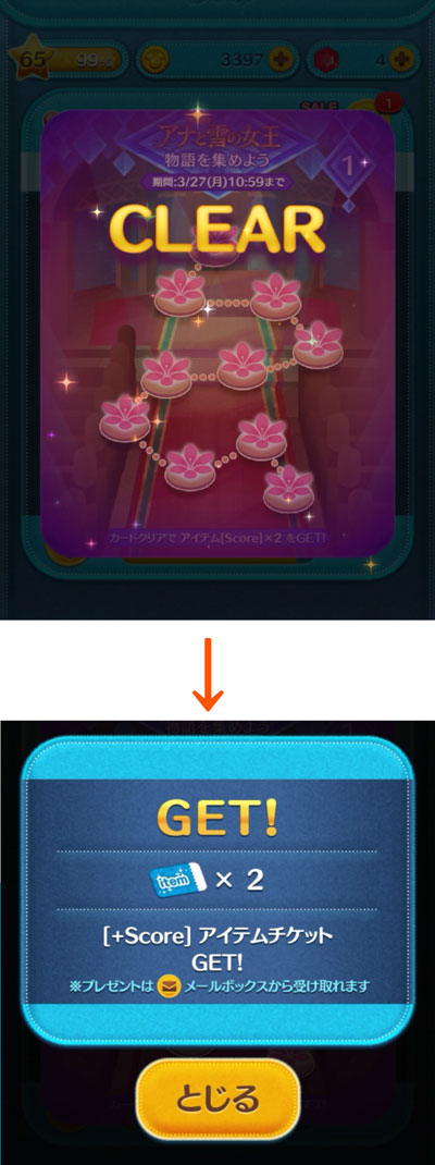 「イベントカード」の条件をすべてクリアすると、このようにアイテムを獲得することができます。 イベントでしか手に入らないピンズや限定ツム、スキルチケットやプレミアムBOチケットなど、「イベントカード」をクリアするといいことばかりです! イベントが開催されたら、積極的に参加してみましょう!