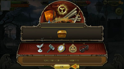 ケージが溜まると、ステージクリアです。 街に現れた魔物に勝利しました。 魔物に勝利すると、報酬が手に入ります。 報酬を入手するため、画面上の宝箱をタップしましょう。
