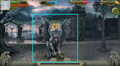 「対決開始」のボタンをタップすると、魔物と対決画面に切り替わります。 画面内にいる魔物をタップして、攻撃しましょう。