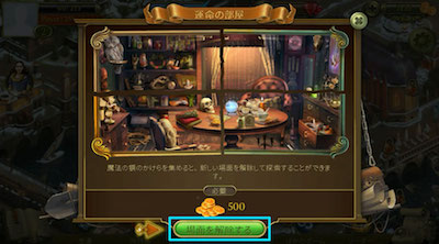 開放できる捜索場面はこのように表示され、場面を開放するには必要な数だけの「コイン」が必要になります。 「コイン」を集めたら、「場面を開放する」をタップして捜索場面を開放します。