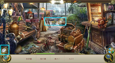 捜索場面の中には、画面上に場所全体が表示されていない場面もあります。 指定されているアイテムを捜索場面からすべて見つけるためには、上下左右に指で画面を動かすと、画面上で表示されていない場面を見ることができます。