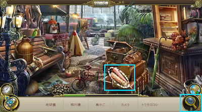「探検家の拡大鏡」は、使用すると捜索アイテムを、探し出して知らせてくれる便利なアイテムです。 使い方は、左下辺りに表示さている「探検家の拡大鏡」をタップします。 探し出された捜索アイテムは、分かりやすく光って表示されます。
