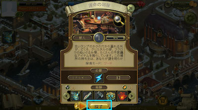 「影の街」全体マップから建物をタップすると、捜索場面での捜索が始まります。