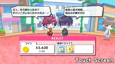 「公演成功」すると「コイン」と「スカウトポイント」を獲得できます。また、ランダムに「キャラクター」やキャラクターの成長に必要な「アイテム」を獲得できる場合もあります。 「公演」を攻略して、「コイン」や「アイテム」などをゲットしましょう!