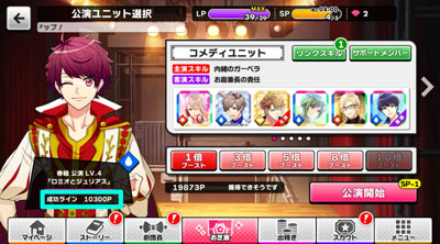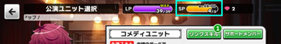 「1倍ブースト」なら「SP」1つ、「3倍ブースト」なら「SP」2つ。というようにそれぞれ「公演」する倍率によって消費する「SP」が違ってきます。多い倍数のブーストを使って「公演」すると、ポイントが多く貰えますが、その分「SP」を多く消費します。 なるべく「SP」を消費しないように、ユニット編成などを考えて配置して、「公演」をクリアできるように攻略していきましょう!