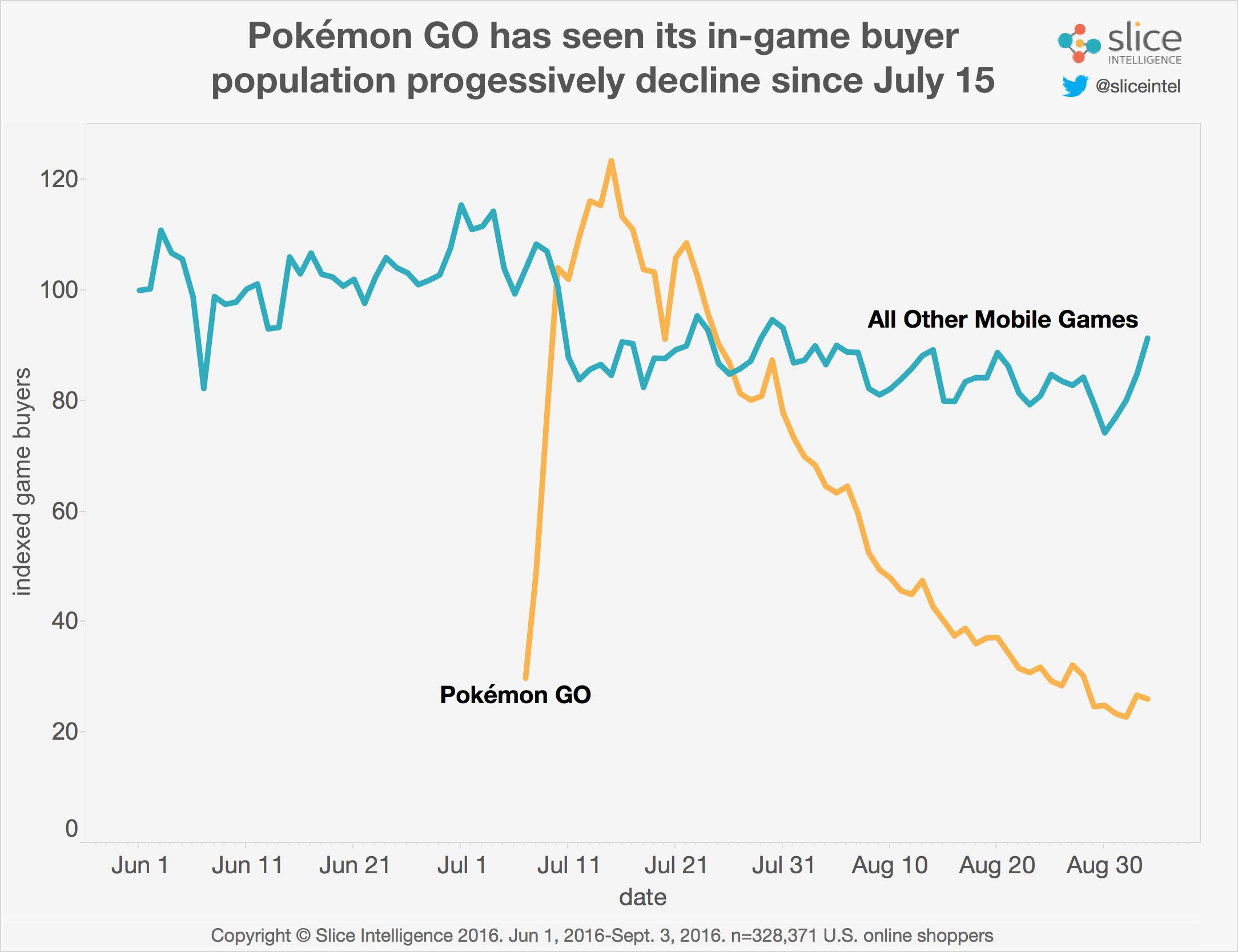 デジタル市場の調査をする会社の調べだとピーク時に比べポケモンGoの課金者数は79%落ち込んでいるようです。