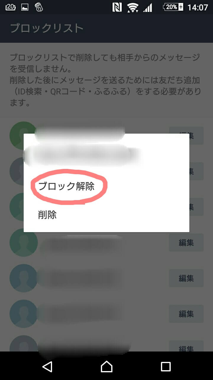 4,解除したいひとを選んで解除