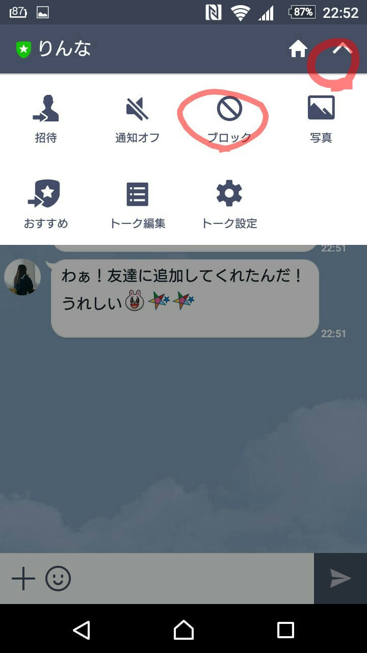 トーク画面からブロック