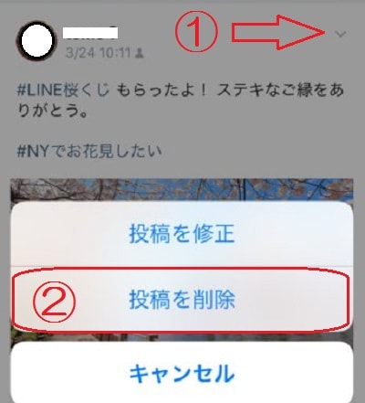 ②次に「投稿を削除」をタップします。 この作業をひとつずつ繰り返していきます。
