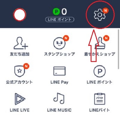 LINEの設定のマークをタップして設定画面を開きます。
