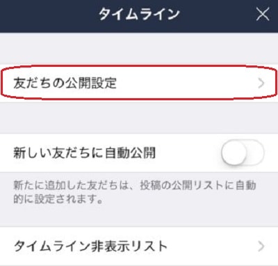LINEの友だちごとにタイムラインの公開・非公開の設定ができます。