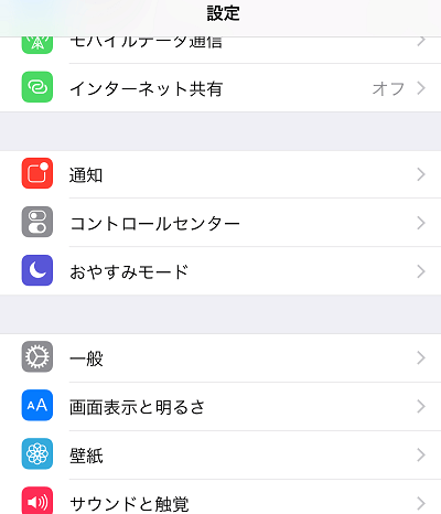 iPhoneの設定画面に行く