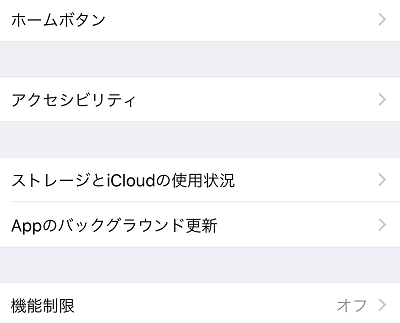 一般をタップした後は、iPhoneの重要な設定を行える画面へと移動します。その中から、「機能制限」の項目をタップして下さい。 機能制限がされている場合はオンになっており、されていない場合はこのようにオフになっています。18歳以上の方は、制限は基本的にオフになっているはずです。