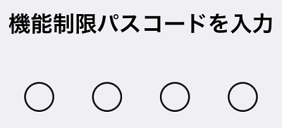 これをタップすると、「機能制限パスコードを入力」の画面に移動します。 機能制限パスコードは、基本的に親御さんが設定するもので、17歳未満は知らない事が殆んどです。