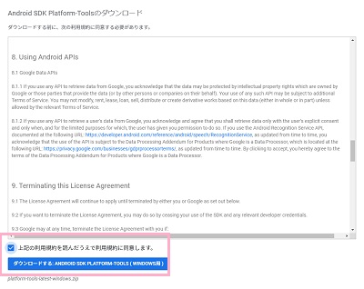 Windowsのコマンドプロンプトでadb(Android Debug Bridge)を使用するために、Android SDKツールをパソコンに導入する必要があります。まずは下記リンク先のWebサイトにアクセスして、Android SDKツールをダウンロードしましょう。