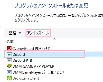 Discordをアンインストールする