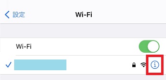 『Wi-Fi』が開いたらコンビニのWi-Fiの右側にある『i』のマークをタップします。ファミマの場合は『Famima_Wi-Fi』と表示されているので右側の『i』をタップしてください。