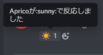 ちなみに、リアクションにマウスカーソルを乗せると右側にリアクションボタンが表示されます。ここから別のリアクションを選択して追加することもできますよ。