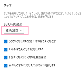 Windows10では、設定からタッチパッドの感度を調整することができます。タッチパッドの反応が悪いと感じたら、タッチパッドの感度を確認してみましょう。