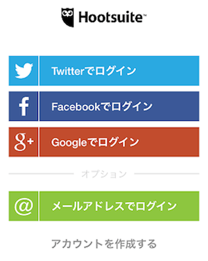Hootsuiteでは、どのツールで利用するのかを確認して来ます。 今回はTwitterなので、Twitterを選択します。その他のツールで使う予定のある方は、どのツールで使えるのかを覚えておきましょう。