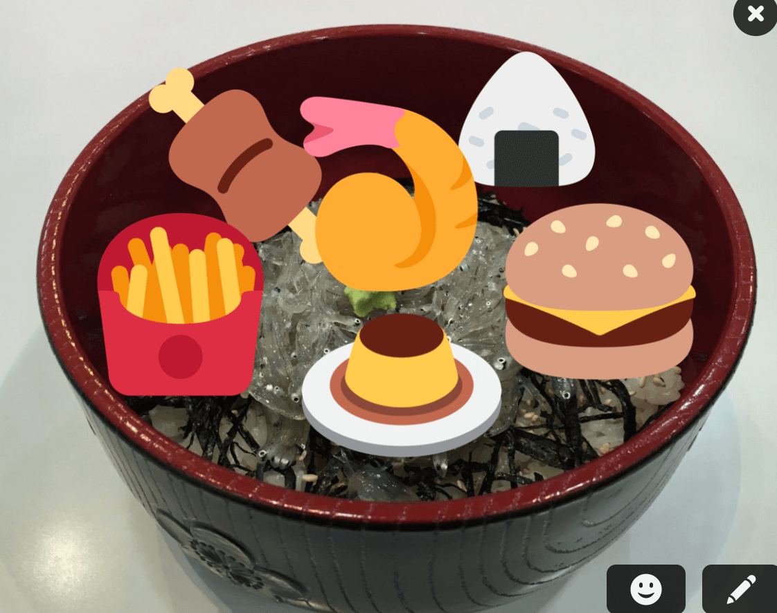 食べ物の写真を撮った時には、ただそのまま投稿するより、ステッカーを使うと目立つようになります。