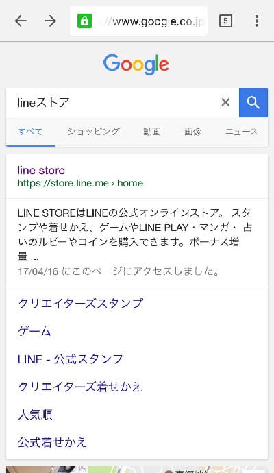 なので、まずはブラウザでLINEストアと検索しましょう。 おそらく一番上に公式のサイトが出ると思うので入ります。