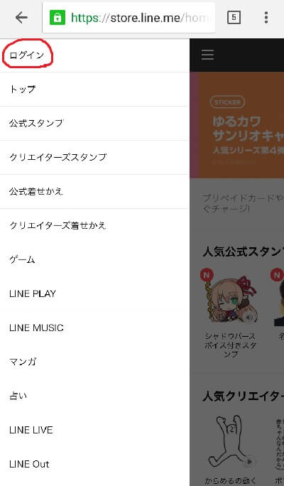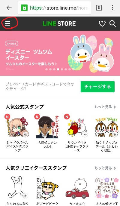 LINEストアに入ると左上に三本線があるのでそれをタップ