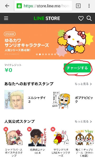 LINEクレジットへのチャージの仕方はLINEのアプリではなくブラウザのLINEストアからチャージしなければなりません。