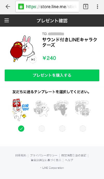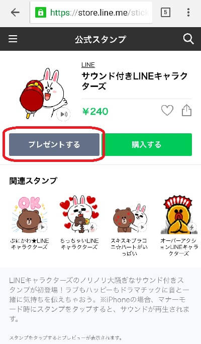 プレゼントしたいスタンプを選び、「購入する」ではなく「プレゼントする」をタップしましょう。