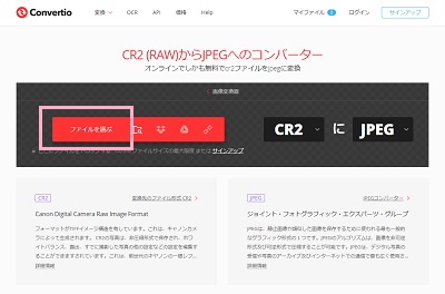 オンラインサービスを利用して.cr2のファイルをJPEG形式のファイルに変換する方法