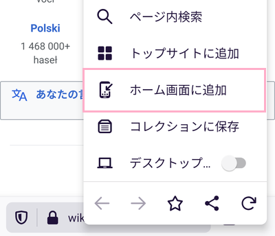 FirefoxでWEBサイトへのショートカットを作成したい