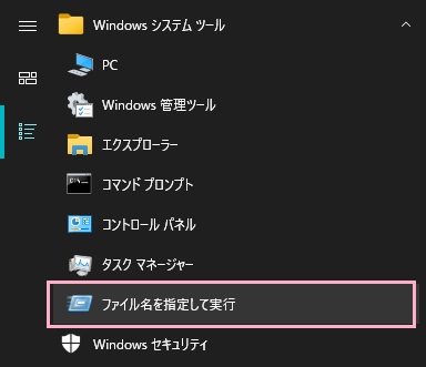 ※「ファイル名を指定して実行」は「Windowsキー+Rキー」の同時押しがショートカットキーになっているので、ショートカットキー操作からファイル名を指定して実行を呼び出してもOKです。