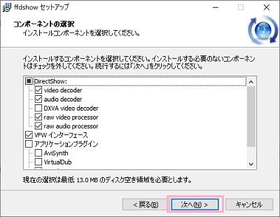 セットアップが完了したらインストールを行いましょう。インストールが完了したら、avi動画が再生できるかどうか試してみましょう。