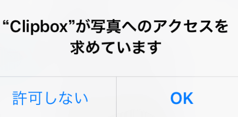 はじめてClipboxの画像をカメラロールに移す場合は許可が必要ですので、「OK」を選択しましょう。