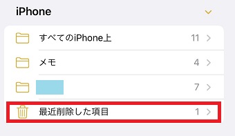 『メモ』アプリを開き『最近削除した項目』をタップします。