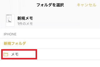 『移動』をタップしたら移動先のフォルダをタップして選択してください。