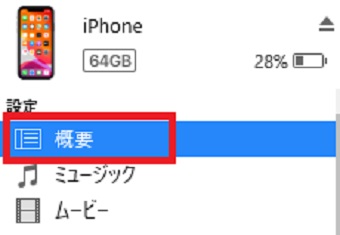 iPhoneの画面が表示されたら左のメニューの『概要』をタップします。