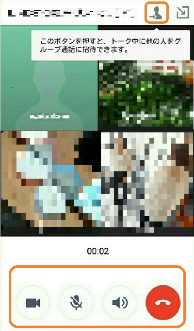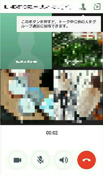 モザイクが入っているため、すこし分かりにくいのですが、グループ通話に参加している人は このように明るいアイコンになります。